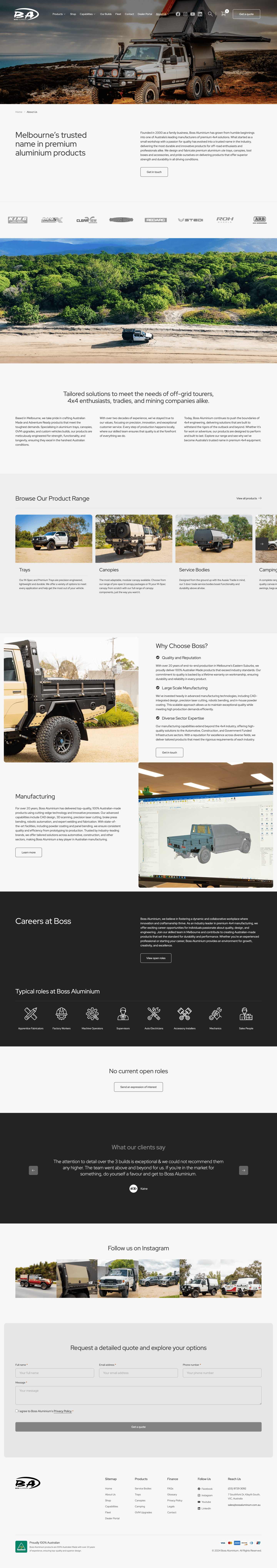 Boss Aluminium, established in 2000, is a Melbourne-based, family-owned business specialising in the design and manufacture of premium aluminium ute trays, canopies, and accessories. Serving a diverse clientele—from hardworking tradies to off-grid adventurers—Boss Aluminium is committed to delivering products that exemplify superior strength, functionality, and durability.